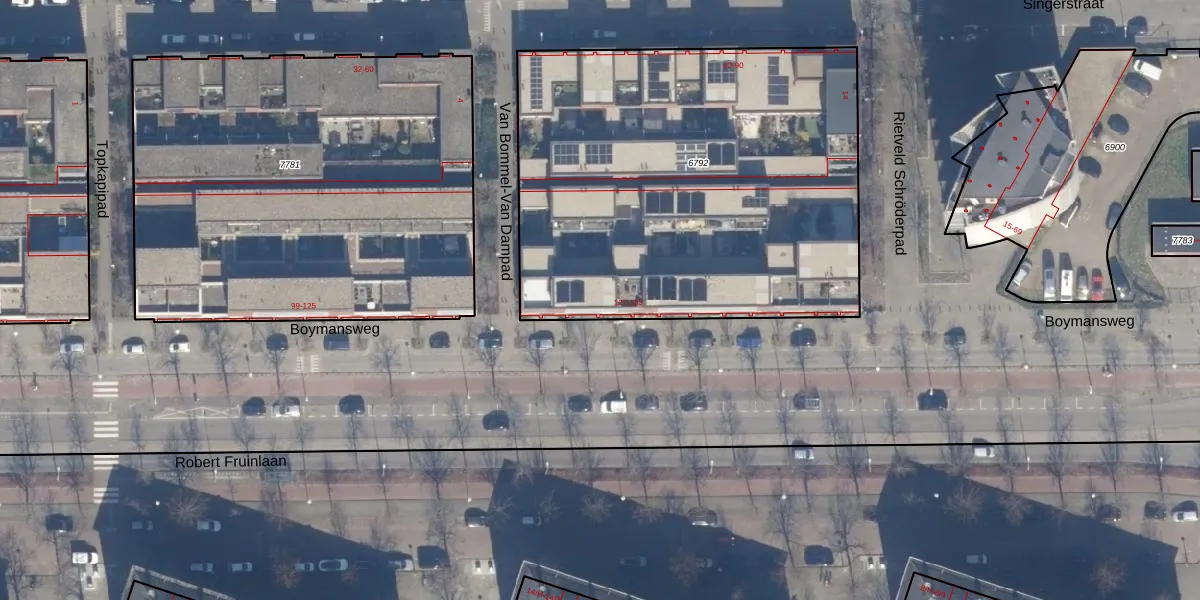 Het perceel waarop Boymansweg 133 staat heeft een oppervlakte van 2544 m². Dit is een zeer groot perceel. De perceeloppervlakte wordt geregistreerd door het Kadaster. Gedetailleerde informatie over de maten van dit perceel kunt u vinden in het rapport Kadastrale kaart met maatvoering van Boymansweg 133.
