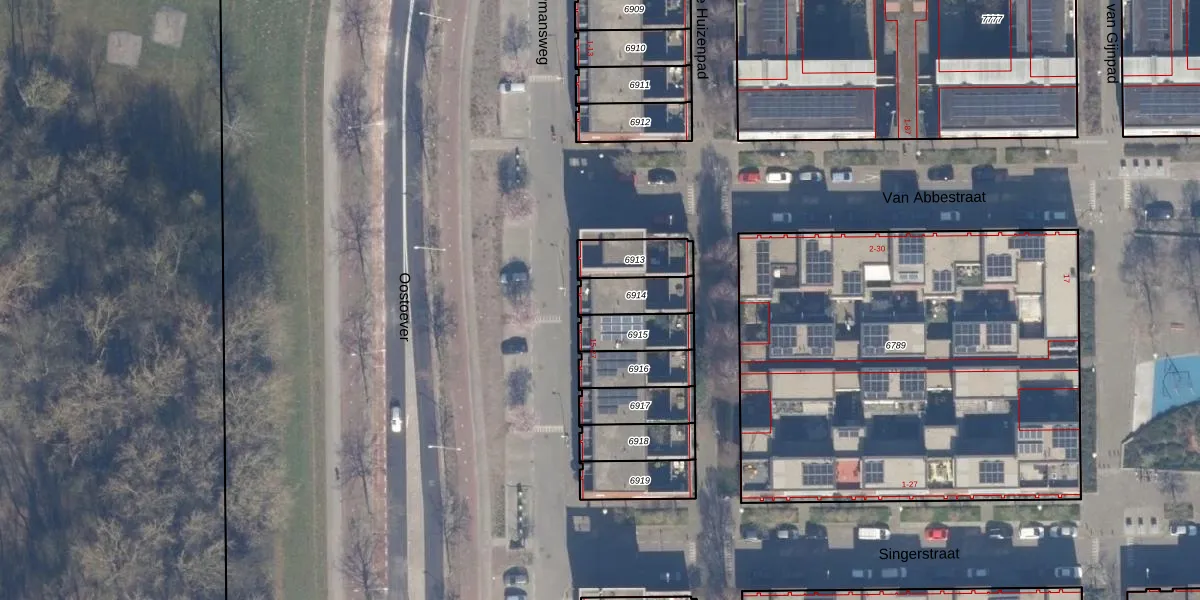 Gebruik de zoekbalk of klik op een perceel voor informatie over de adressen binnen dit perceel.