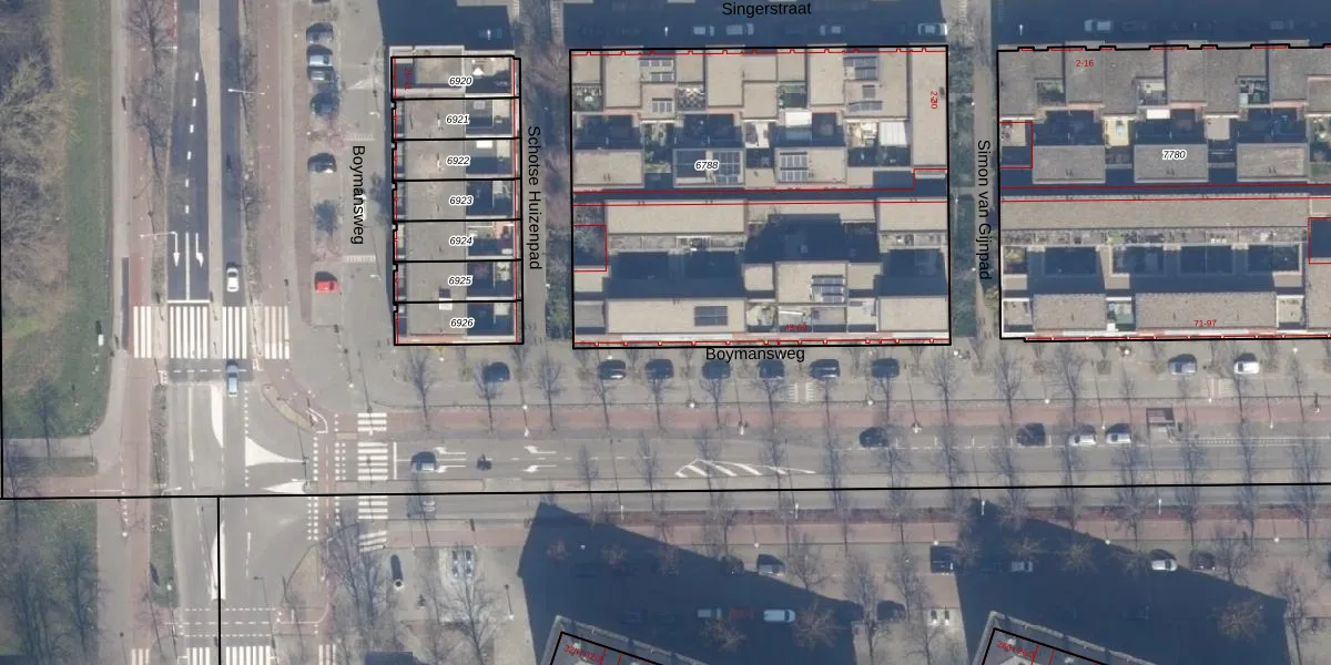 Het perceel waarop Boymansweg 49 staat heeft een oppervlakte van 2544 m². Dit is een zeer groot perceel. De perceeloppervlakte wordt geregistreerd door het Kadaster. Gedetailleerde informatie over de maten van dit perceel kunt u vinden in het rapport Kadastrale kaart met maatvoering van Boymansweg 49.