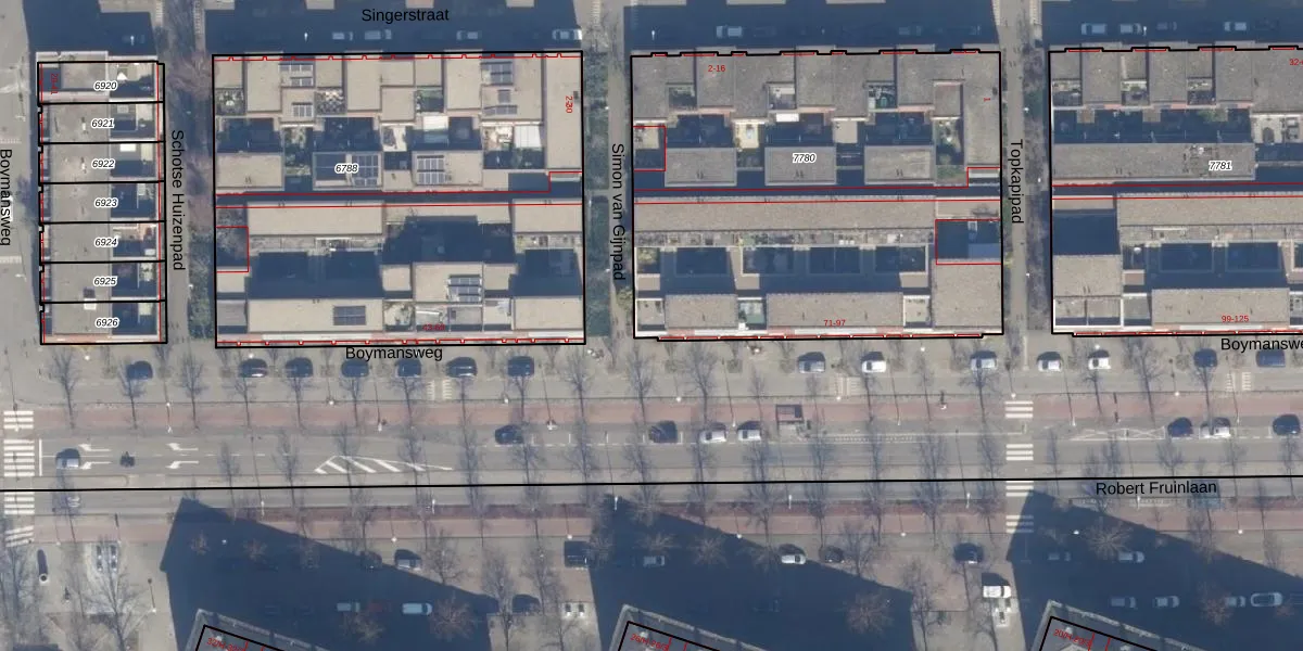 Het perceel waarop Boymansweg 71 staat heeft een oppervlakte van 2490 m². Dit is een zeer groot perceel. De perceeloppervlakte wordt geregistreerd door het Kadaster. Gedetailleerde informatie over de maten van dit perceel kunt u vinden in het rapport Kadastrale kaart met maatvoering van Boymansweg 71.
