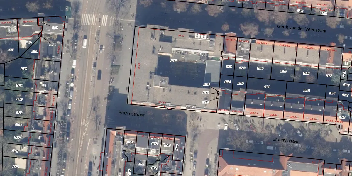 Brahmsstraat 114 is gelegen op kadastraal perceel ASD22Z2217. Deze kadastrale aanduiding is uniek en wordt gebruikt door het Kadaster om eigendomsrechten en andere zakelijke rechten vast te leggen. Het perceel maakt onderdeel uit van de kadastrale gemeente Amsterdam.