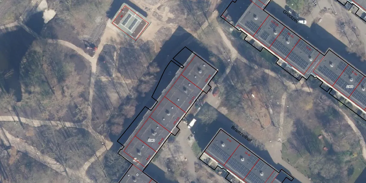 Het perceel waarop Bramzeil 125 staat heeft een oppervlakte van 2870 m². Dit is een zeer groot perceel. De perceeloppervlakte wordt geregistreerd door het Kadaster. Gedetailleerde informatie over de maten van dit perceel kunt u vinden in het rapport Kadastrale kaart met maatvoering van Bramzeil 125.