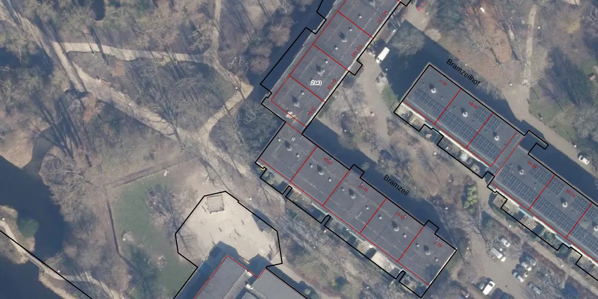 Het perceel waarop Bramzeil 59 staat heeft een oppervlakte van 2870 m². Dit is een zeer groot perceel. De perceeloppervlakte wordt geregistreerd door het Kadaster. Gedetailleerde informatie over de maten van dit perceel kunt u vinden in het rapport Kadastrale kaart met maatvoering van Bramzeil 59.
