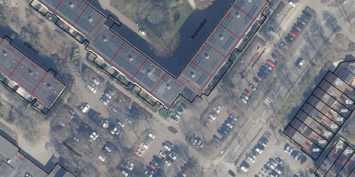 Bramzeilhof 100 is gelegen op kadastraal perceel ASD36AQ2303. Deze kadastrale aanduiding is uniek en wordt gebruikt door het Kadaster om eigendomsrechten en andere zakelijke rechten vast te leggen. Het perceel maakt onderdeel uit van de kadastrale gemeente Amsterdam.