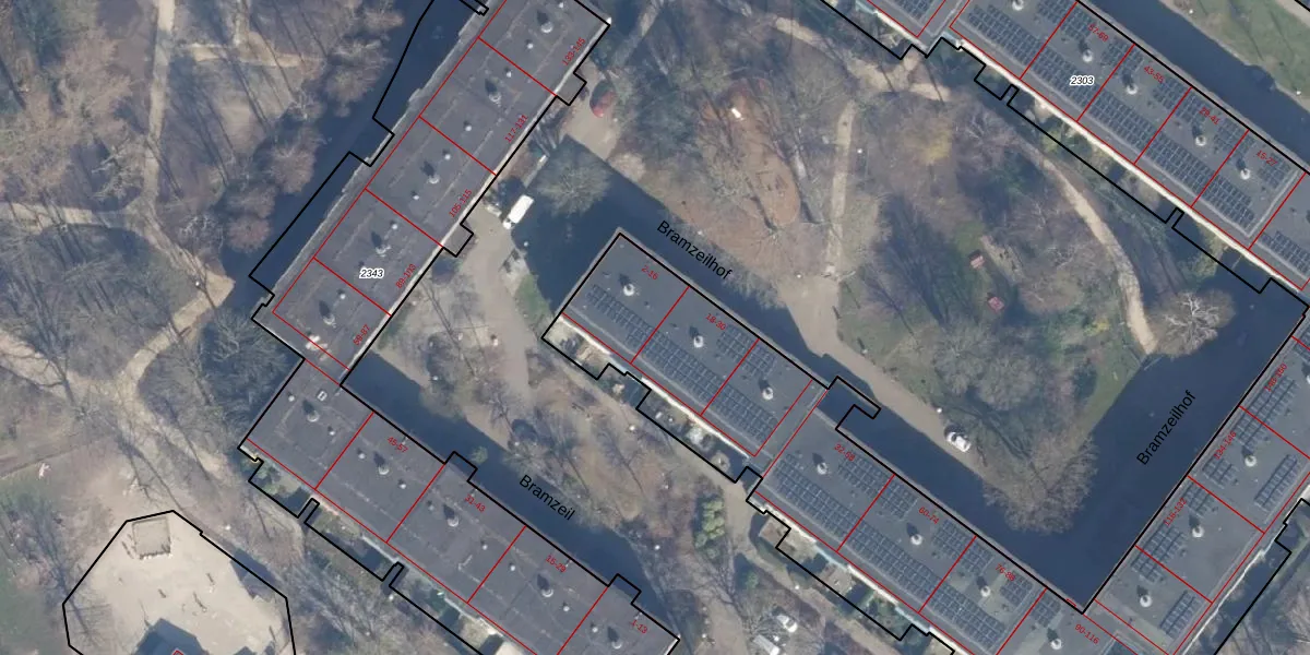 Bramzeilhof 12 is gelegen op kadastraal perceel ASD36AQ2303. Deze kadastrale aanduiding is uniek en wordt gebruikt door het Kadaster om eigendomsrechten en andere zakelijke rechten vast te leggen. Het perceel maakt onderdeel uit van de kadastrale gemeente Amsterdam.