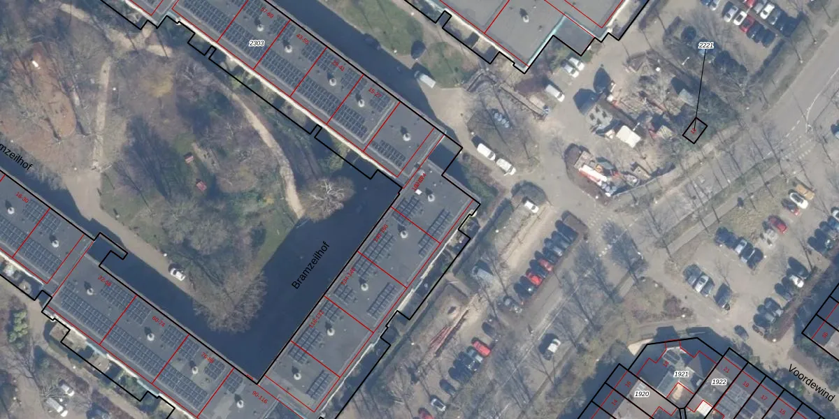 Bramzeilhof 166 is gelegen op kadastraal perceel ASD36AQ2303. Deze kadastrale aanduiding is uniek en wordt gebruikt door het Kadaster om eigendomsrechten en andere zakelijke rechten vast te leggen. Het perceel maakt onderdeel uit van de kadastrale gemeente Amsterdam.