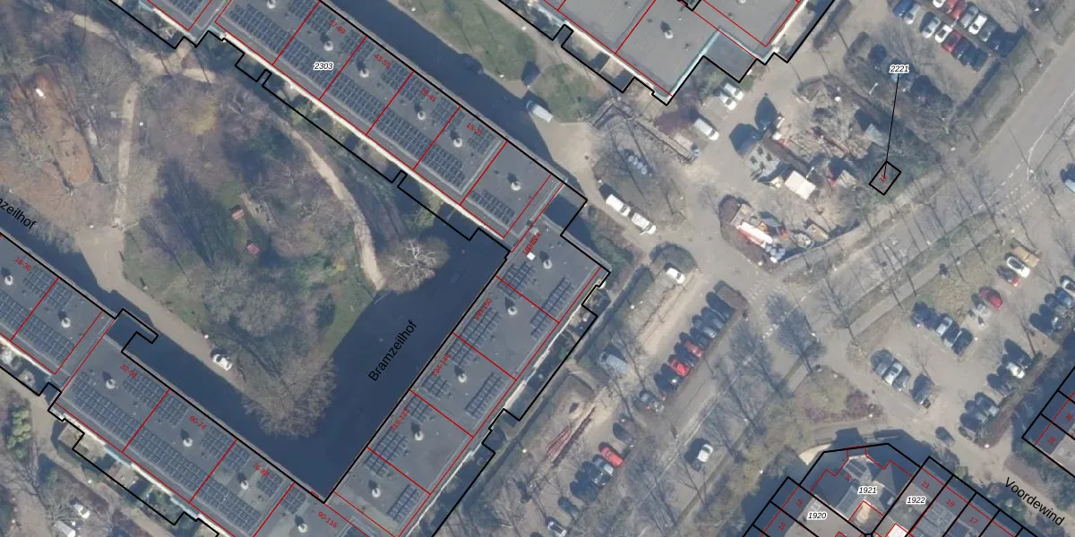 Het perceel waarop Bramzeilhof 168 staat heeft een oppervlakte van 6940 m². Dit is een zeer groot perceel. De perceeloppervlakte wordt geregistreerd door het Kadaster. Gedetailleerde informatie over de maten van dit perceel kunt u vinden in het rapport Kadastrale kaart met maatvoering van Bramzeilhof 168.