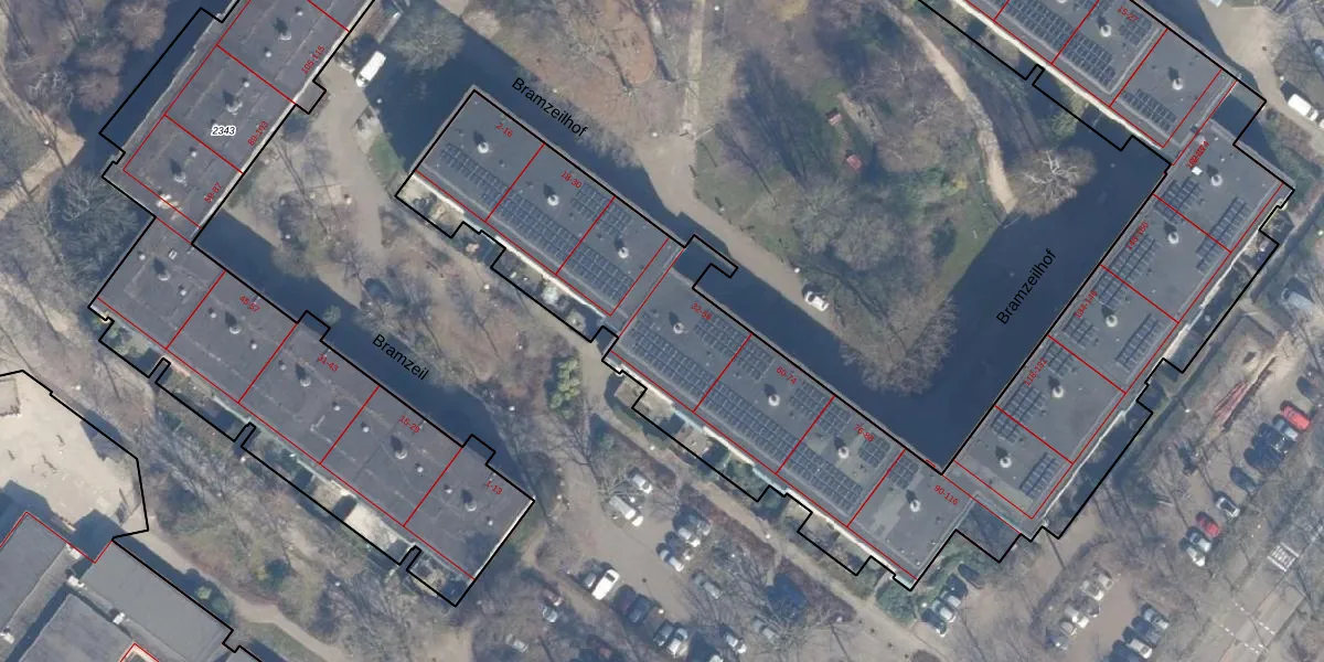 Bramzeilhof 54 is gelegen op kadastraal perceel ASD36AQ2303. Deze kadastrale aanduiding is uniek en wordt gebruikt door het Kadaster om eigendomsrechten en andere zakelijke rechten vast te leggen. Het perceel maakt onderdeel uit van de kadastrale gemeente Amsterdam.