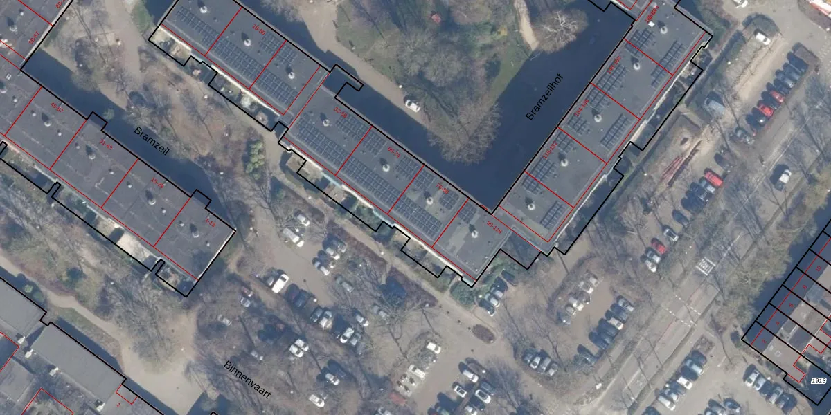 Bramzeilhof 84 is gelegen op kadastraal perceel ASD36AQ2303. Deze kadastrale aanduiding is uniek en wordt gebruikt door het Kadaster om eigendomsrechten en andere zakelijke rechten vast te leggen. Het perceel maakt onderdeel uit van de kadastrale gemeente Amsterdam.