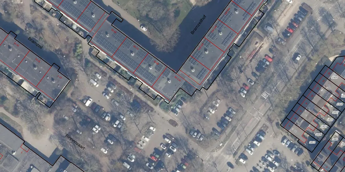 Het perceel waarop Bramzeilhof 96 staat heeft een oppervlakte van 6940 m². Dit is een zeer groot perceel. De perceeloppervlakte wordt geregistreerd door het Kadaster. Gedetailleerde informatie over de maten van dit perceel kunt u vinden in het rapport Kadastrale kaart met maatvoering van Bramzeilhof 96.