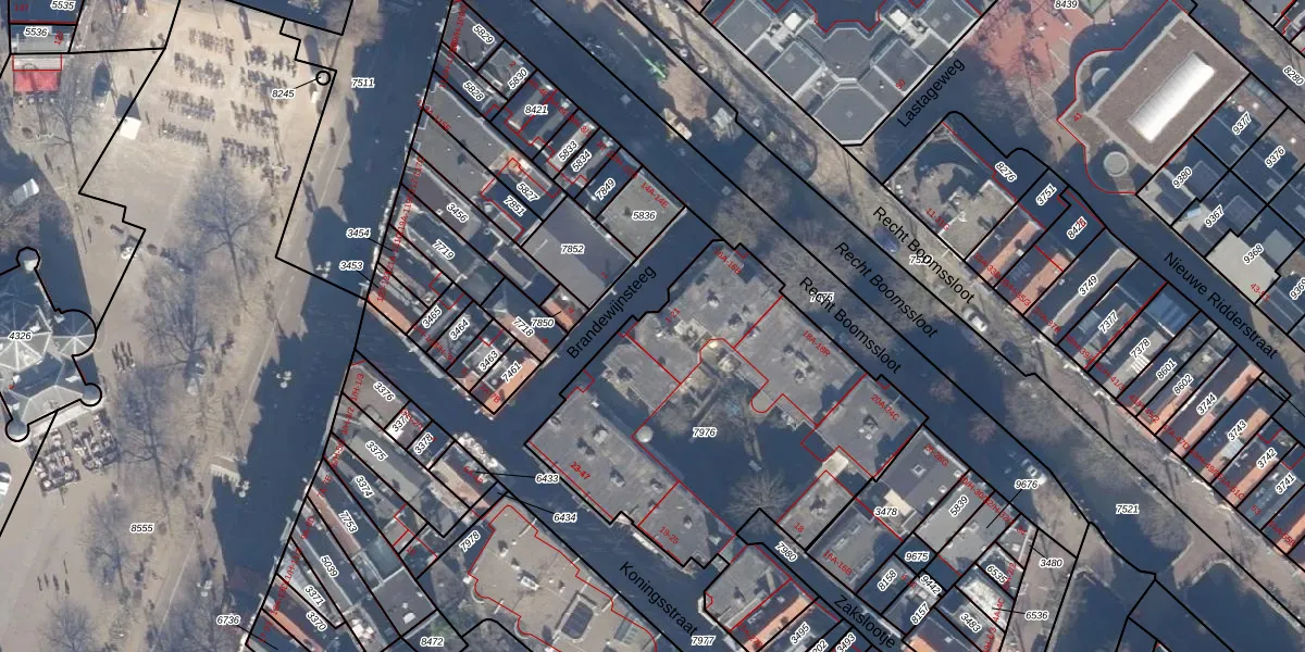 Het perceel waarop Brandewijnsteeg 1 staat heeft een oppervlakte van 1858 m². Dit is een zeer groot perceel. De perceeloppervlakte wordt geregistreerd door het Kadaster. Gedetailleerde informatie over de maten van dit perceel kunt u vinden in het rapport Kadastrale kaart met maatvoering van Brandewijnsteeg 1.