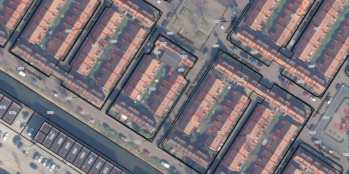 Het perceel waarop Brede Vogelstraat 9 staat heeft een oppervlakte van 1549 m². Dit is een zeer groot perceel. De perceeloppervlakte wordt geregistreerd door het Kadaster. Gedetailleerde informatie over de maten van dit perceel kunt u vinden in het rapport Kadastrale kaart met maatvoering van Brede Vogelstraat 9.