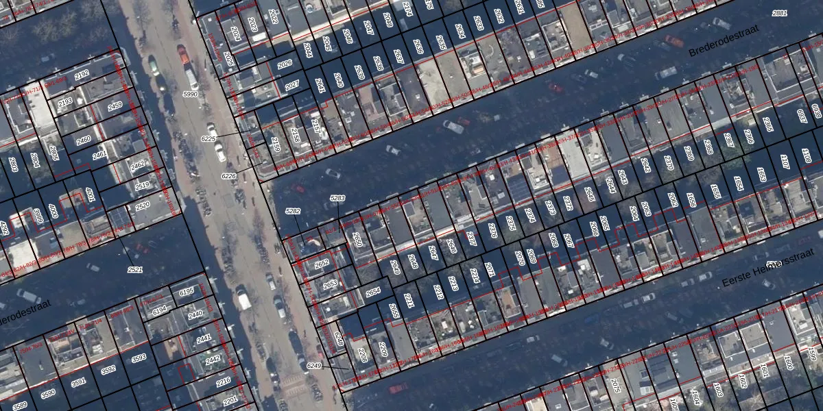 Brederodestraat 53-D is gelegen op kadastraal perceel ASD16T2647. Deze kadastrale aanduiding is uniek en wordt gebruikt door het Kadaster om eigendomsrechten en andere zakelijke rechten vast te leggen. Het perceel maakt onderdeel uit van de kadastrale gemeente Amsterdam.