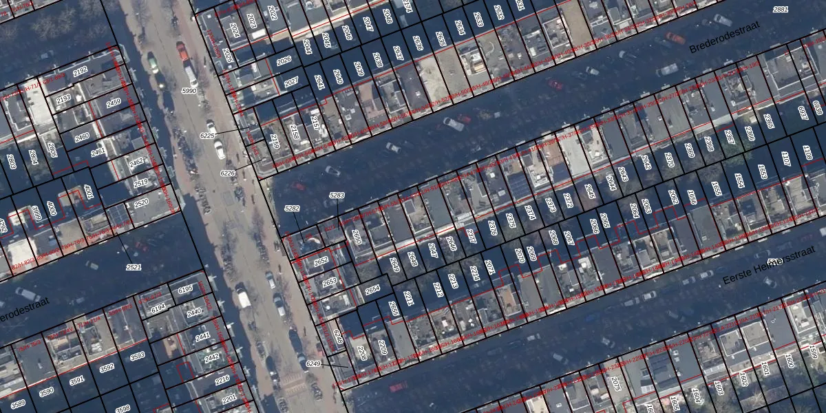 Brederodestraat 53-E is gelegen op kadastraal perceel ASD16T2647. Deze kadastrale aanduiding is uniek en wordt gebruikt door het Kadaster om eigendomsrechten en andere zakelijke rechten vast te leggen. Het perceel maakt onderdeel uit van de kadastrale gemeente Amsterdam.