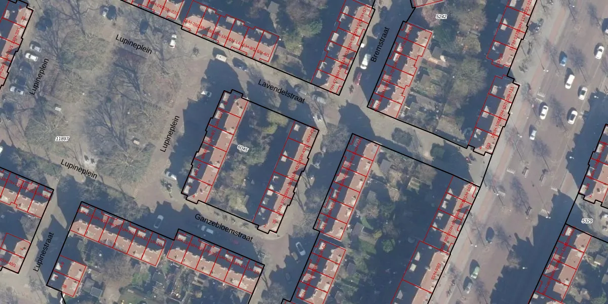 Het perceel waarop Bremstraat 43-1 staat heeft een oppervlakte van 1265 m². Dit is een zeer groot perceel. De perceeloppervlakte wordt geregistreerd door het Kadaster. Gedetailleerde informatie over de maten van dit perceel kunt u vinden in het rapport Kadastrale kaart met maatvoering van Bremstraat 43-1.