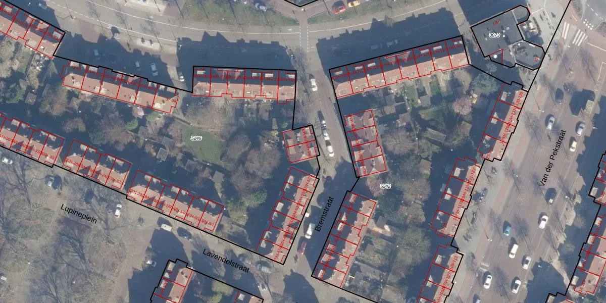Het perceel waarop Bremstraat 59-1 staat heeft een oppervlakte van 5900 m². Dit is een zeer groot perceel. De perceeloppervlakte wordt geregistreerd door het Kadaster. Gedetailleerde informatie over de maten van dit perceel kunt u vinden in het rapport Kadastrale kaart met maatvoering van Bremstraat 59-1.