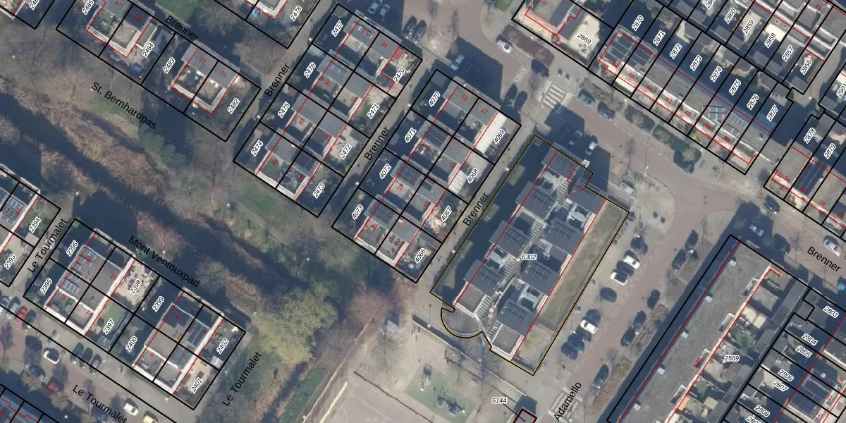 Gebruik de zoekbalk of klik op een perceel voor informatie over de adressen binnen dit perceel.