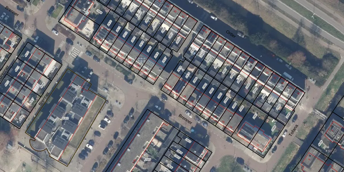 Het perceel waarop Brenner 32 staat heeft een oppervlakte van 123 m². Dit is een middelgroot perceel. De perceeloppervlakte wordt geregistreerd door het Kadaster. Gedetailleerde informatie over de maten van dit perceel kunt u vinden in het rapport Kadastrale kaart met maatvoering van Brenner 32.