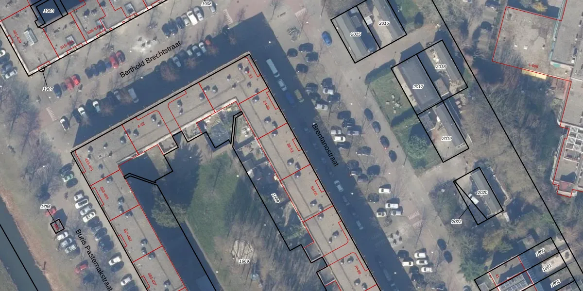 Het perceel waarop Brentanostraat 50 staat heeft een oppervlakte van 6985 m². Dit is een zeer groot perceel. De perceeloppervlakte wordt geregistreerd door het Kadaster. Gedetailleerde informatie over de maten van dit perceel kunt u vinden in het rapport Kadastrale kaart met maatvoering van Brentanostraat 50.
