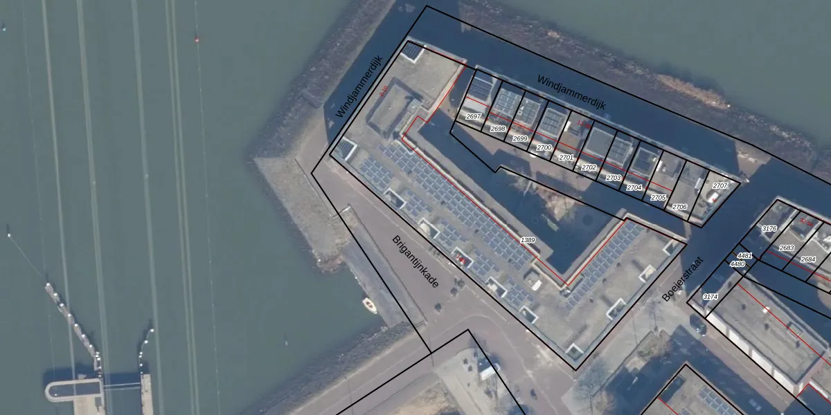 Het perceel waarop Brigantijnkade 13 staat heeft een oppervlakte van 2538 m². Dit is een zeer groot perceel. De perceeloppervlakte wordt geregistreerd door het Kadaster. Gedetailleerde informatie over de maten van dit perceel kunt u vinden in het rapport Kadastrale kaart met maatvoering van Brigantijnkade 13.