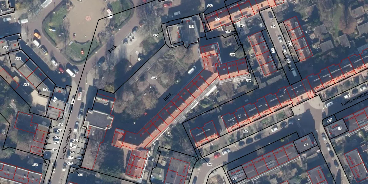 Het perceel waarop Brink 19 staat heeft een oppervlakte van 4216 m². Dit is een zeer groot perceel. De perceeloppervlakte wordt geregistreerd door het Kadaster. Gedetailleerde informatie over de maten van dit perceel kunt u vinden in het rapport Kadastrale kaart met maatvoering van Brink 19.