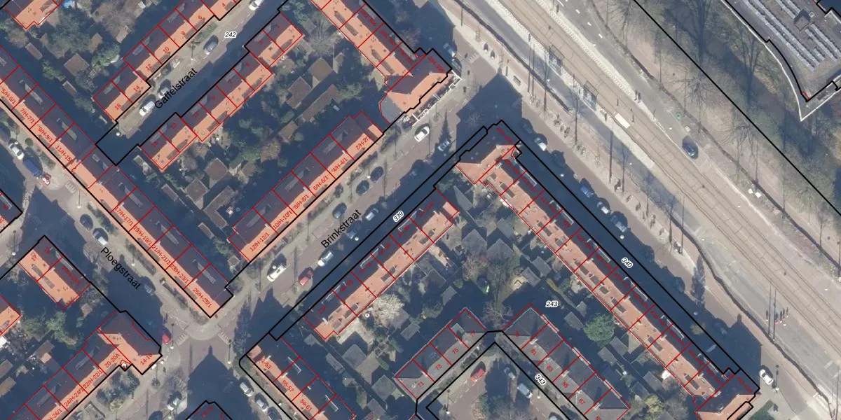 Brinkstraat 1-A is gelegen op kadastraal perceel WTG02C243. Deze kadastrale aanduiding is uniek en wordt gebruikt door het Kadaster om eigendomsrechten en andere zakelijke rechten vast te leggen. Het perceel maakt onderdeel uit van de kadastrale gemeente Watergraafsmeer.