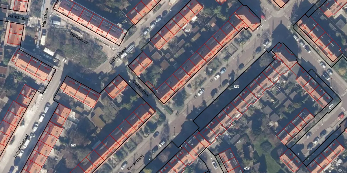 Het perceel waarop Brinkstraat 36-H staat heeft een oppervlakte van 2395 m². Dit is een zeer groot perceel. De perceeloppervlakte wordt geregistreerd door het Kadaster. Gedetailleerde informatie over de maten van dit perceel kunt u vinden in het rapport Kadastrale kaart met maatvoering van Brinkstraat 36-H.