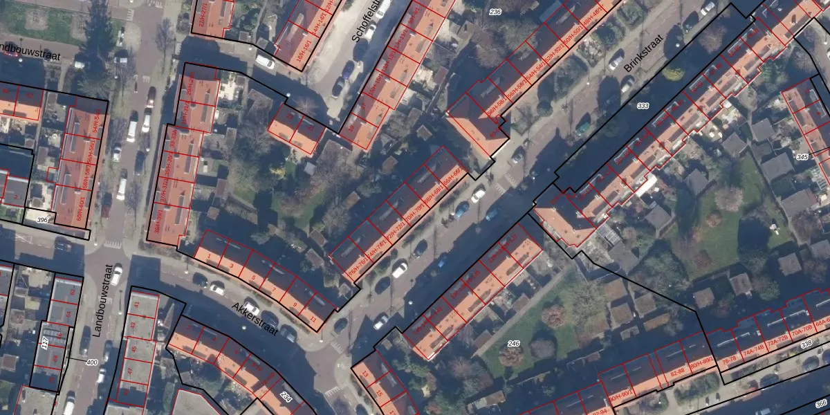 Het perceel waarop Brinkstraat 70-H staat heeft een oppervlakte van 5905 m². Dit is een zeer groot perceel. De perceeloppervlakte wordt geregistreerd door het Kadaster. Gedetailleerde informatie over de maten van dit perceel kunt u vinden in het rapport Kadastrale kaart met maatvoering van Brinkstraat 70-H.
