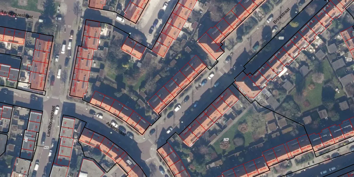 Het perceel waarop Brinkstraat 72-1 staat heeft een oppervlakte van 5905 m². Dit is een zeer groot perceel. De perceeloppervlakte wordt geregistreerd door het Kadaster. Gedetailleerde informatie over de maten van dit perceel kunt u vinden in het rapport Kadastrale kaart met maatvoering van Brinkstraat 72-1.