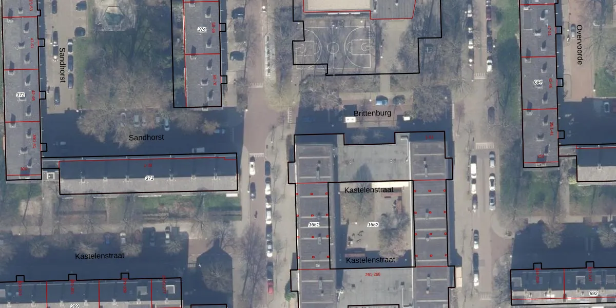 Het perceel waarop Brittenburg 47 staat heeft een oppervlakte van 2072 m². Dit is een zeer groot perceel. De perceeloppervlakte wordt geregistreerd door het Kadaster. Gedetailleerde informatie over de maten van dit perceel kunt u vinden in het rapport Kadastrale kaart met maatvoering van Brittenburg 47.