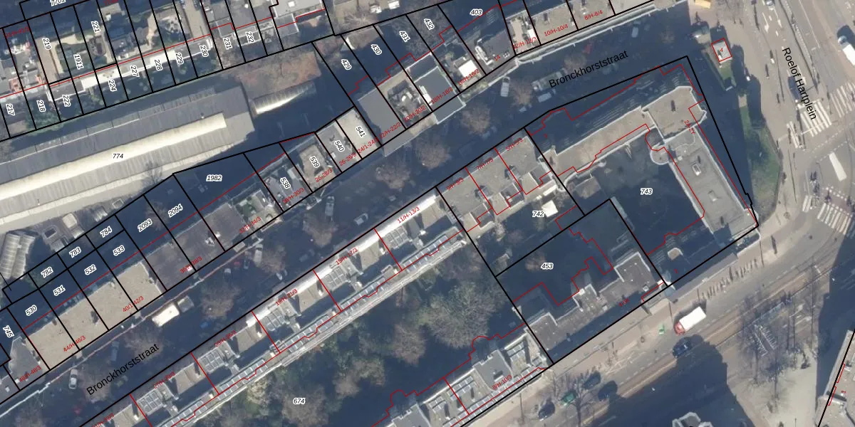 Het adres is gelegen op perceel 674 in de sectie Z en de kadastrale gemeente Amsterdam. De kadastrale aanduiding is aldus ASD22-Z-674. De gemiddelde perceeloppervlakte in de kadastrale gemeente Amsterdam is 654,25 m². Dit perceel is met zijn 6042 m² dus groter dan gemiddeld. De grootste perceeloppervlakte in de kadastrale gemeente is 18,1 ha. De kleinste oppervlakte bedraagt 0 m². Op het perceel liggen in totaal 108 adressen. De huidige grenzen van het perceel zijn digitaal in de Basisregistratie Kadaster (BRK) geregistreerd op 02-11-2006.