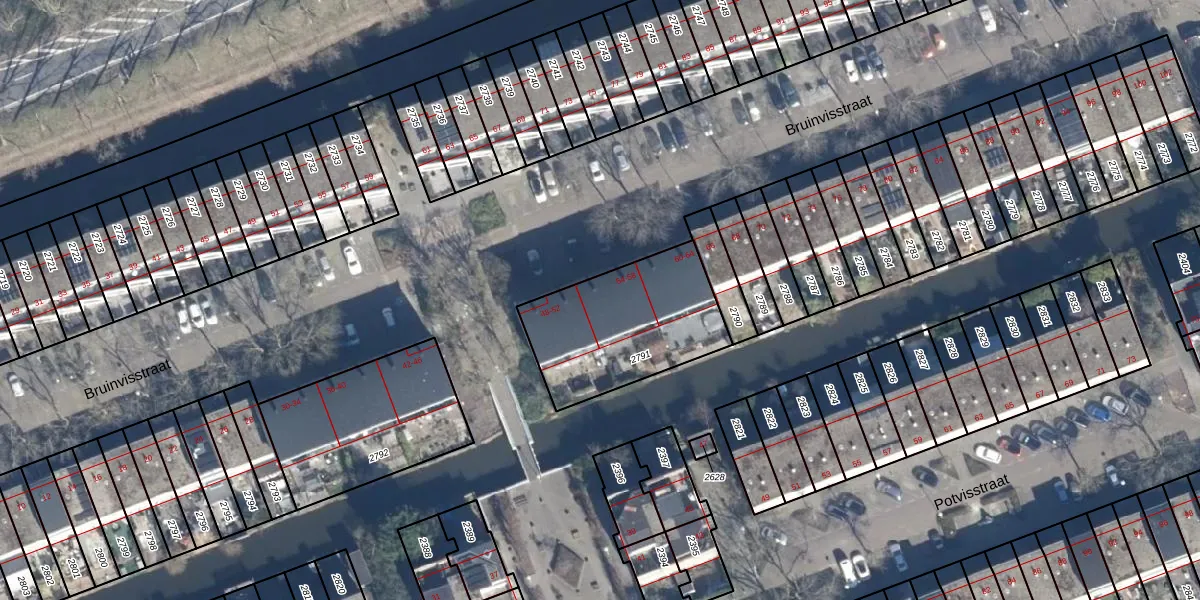 Het perceel waarop Bruinvisstraat 54 staat heeft een oppervlakte van 590 m². Dit is een groot perceel. De perceeloppervlakte wordt geregistreerd door het Kadaster. Gedetailleerde informatie over de maten van dit perceel kunt u vinden in het rapport Kadastrale kaart met maatvoering van Bruinvisstraat 54.