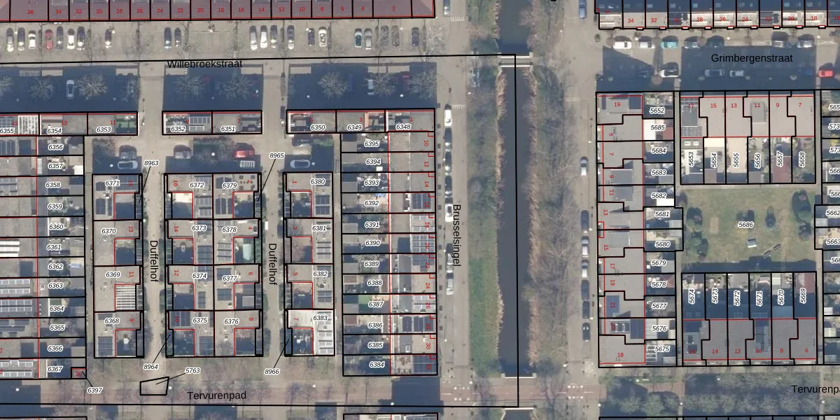 Het perceel waarop Brusselsingel 16 staat heeft een oppervlakte van 108 m². Dit is een middelgroot perceel. De perceeloppervlakte wordt geregistreerd door het Kadaster. Gedetailleerde informatie over de maten van dit perceel kunt u vinden in het rapport Kadastrale kaart met maatvoering van Brusselsingel 16.