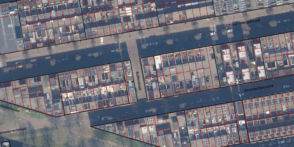 Bufferstraat 1 is gelegen op kadastraal perceel ASD02A7535. Deze kadastrale aanduiding is uniek en wordt gebruikt door het Kadaster om eigendomsrechten en andere zakelijke rechten vast te leggen. Het perceel maakt onderdeel uit van de kadastrale gemeente Amsterdam.