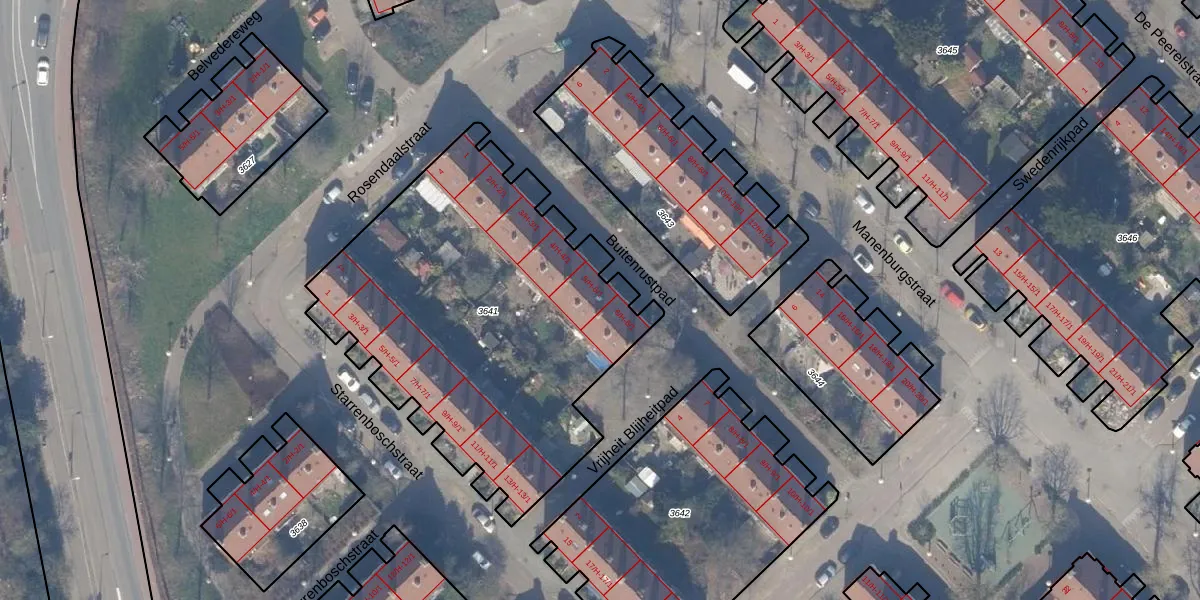 Buitenrustpad 5-H is gelegen op kadastraal perceel WTG02A3641. Deze kadastrale aanduiding is uniek en wordt gebruikt door het Kadaster om eigendomsrechten en andere zakelijke rechten vast te leggen. Het perceel maakt onderdeel uit van de kadastrale gemeente Watergraafsmeer.