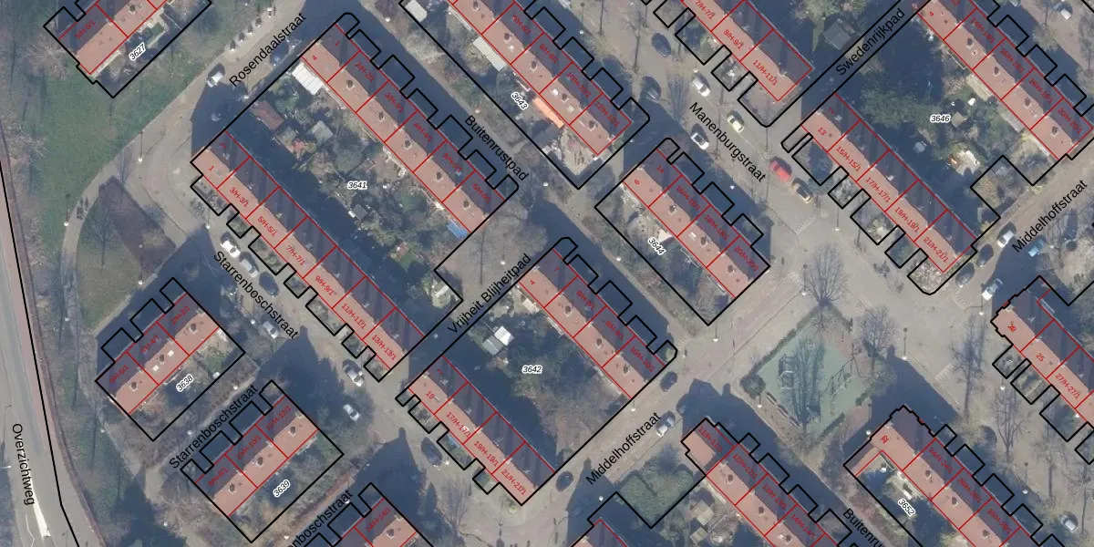 Buitenrustpad 7 is gelegen op kadastraal perceel WTG02A3642. Deze kadastrale aanduiding is uniek en wordt gebruikt door het Kadaster om eigendomsrechten en andere zakelijke rechten vast te leggen. Het perceel maakt onderdeel uit van de kadastrale gemeente Watergraafsmeer.