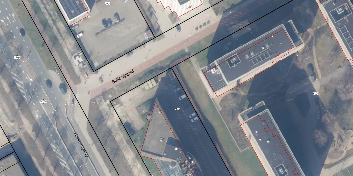 Het perceel waarop Bullewijkpad 112 staat heeft een oppervlakte van 3773 m². Dit is een zeer groot perceel. De perceeloppervlakte wordt geregistreerd door het Kadaster. Gedetailleerde informatie over de maten van dit perceel kunt u vinden in het rapport Kadastrale kaart met maatvoering van Bullewijkpad 112.