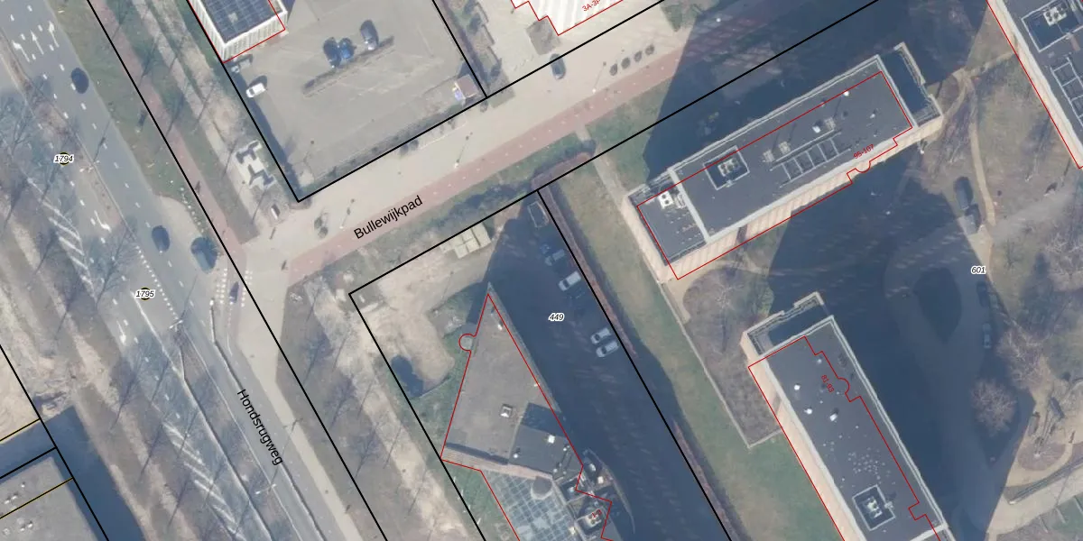 Het perceel waarop Bullewijkpad 130 staat heeft een oppervlakte van 3773 m². Dit is een zeer groot perceel. De perceeloppervlakte wordt geregistreerd door het Kadaster. Gedetailleerde informatie over de maten van dit perceel kunt u vinden in het rapport Kadastrale kaart met maatvoering van Bullewijkpad 130.