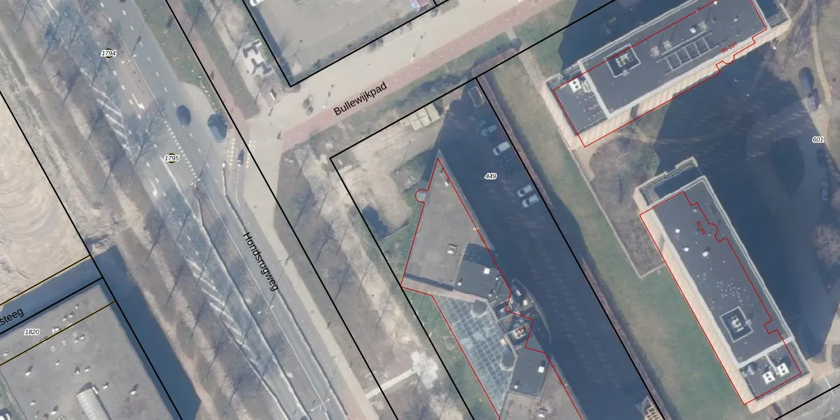 Het perceel waarop Bullewijkpad 198 staat heeft een oppervlakte van 3773 m². Dit is een zeer groot perceel. De perceeloppervlakte wordt geregistreerd door het Kadaster. Gedetailleerde informatie over de maten van dit perceel kunt u vinden in het rapport Kadastrale kaart met maatvoering van Bullewijkpad 198.