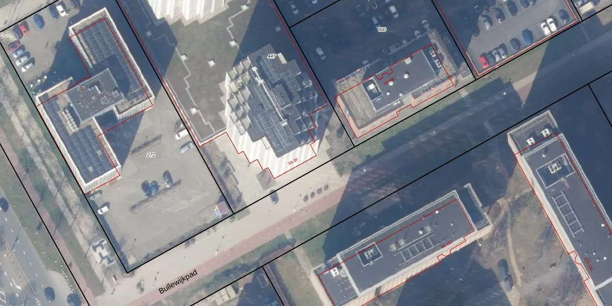 Het perceel waarop Bullewijkpad 3-B-26 staat heeft een oppervlakte van 4013 m². Dit is een zeer groot perceel. De perceeloppervlakte wordt geregistreerd door het Kadaster. Gedetailleerde informatie over de maten van dit perceel kunt u vinden in het rapport Kadastrale kaart met maatvoering van Bullewijkpad 3-B-26.