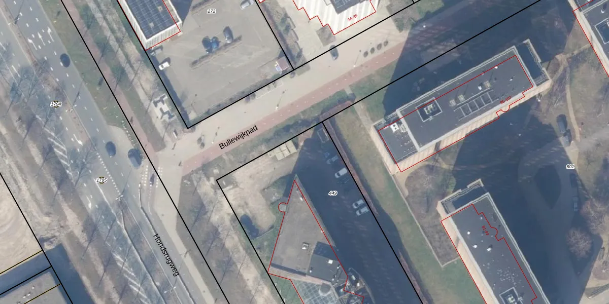 Het perceel waarop Bullewijkpad 48 staat heeft een oppervlakte van 3773 m². Dit is een zeer groot perceel. De perceeloppervlakte wordt geregistreerd door het Kadaster. Gedetailleerde informatie over de maten van dit perceel kunt u vinden in het rapport Kadastrale kaart met maatvoering van Bullewijkpad 48.
