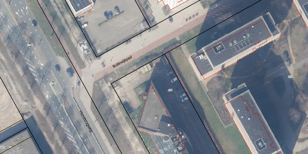 Het perceel waarop Bullewijkpad 86 staat heeft een oppervlakte van 3773 m². Dit is een zeer groot perceel. De perceeloppervlakte wordt geregistreerd door het Kadaster. Gedetailleerde informatie over de maten van dit perceel kunt u vinden in het rapport Kadastrale kaart met maatvoering van Bullewijkpad 86.