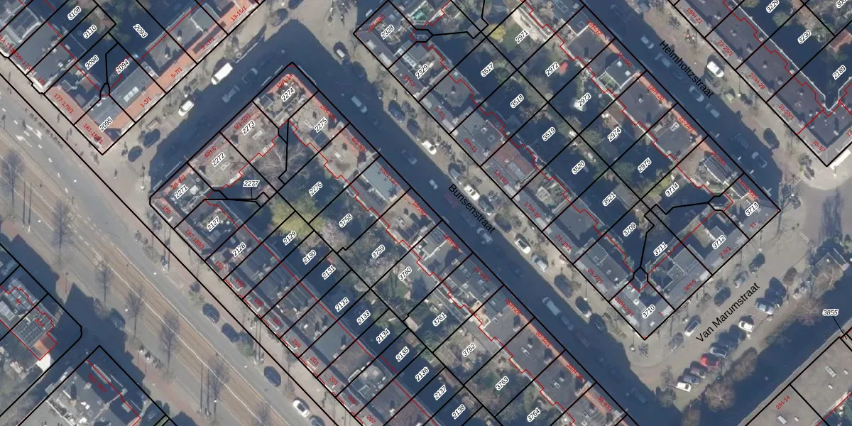 Het perceel waarop Bunsenstraat 16-H staat heeft een oppervlakte van 250 m². Dit is een middelgroot perceel. De perceeloppervlakte wordt geregistreerd door het Kadaster. Gedetailleerde informatie over de maten van dit perceel kunt u vinden in het rapport Kadastrale kaart met maatvoering van Bunsenstraat 16-H.