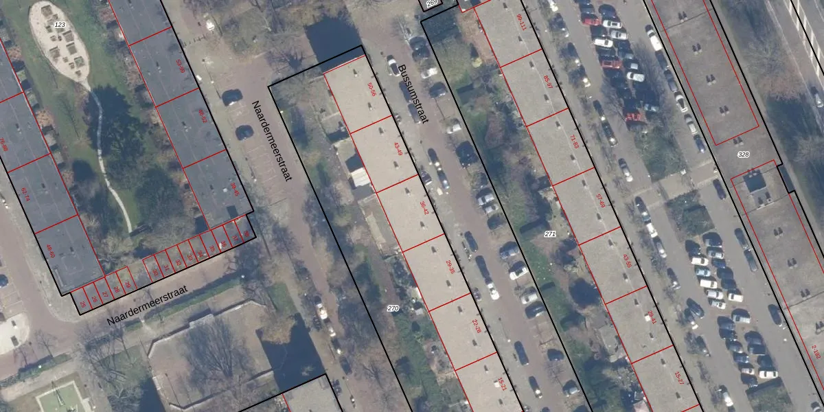 Het perceel waarop Bussumstraat 40 staat heeft een oppervlakte van 3205 m². Dit is een zeer groot perceel. De perceeloppervlakte wordt geregistreerd door het Kadaster. Gedetailleerde informatie over de maten van dit perceel kunt u vinden in het rapport Kadastrale kaart met maatvoering van Bussumstraat 40.