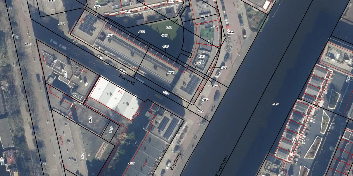 Buyskade 222 is gelegen op kadastraal perceel ASD21Y4655. Deze kadastrale aanduiding is uniek en wordt gebruikt door het Kadaster om eigendomsrechten en andere zakelijke rechten vast te leggen. Het perceel maakt onderdeel uit van de kadastrale gemeente Amsterdam.