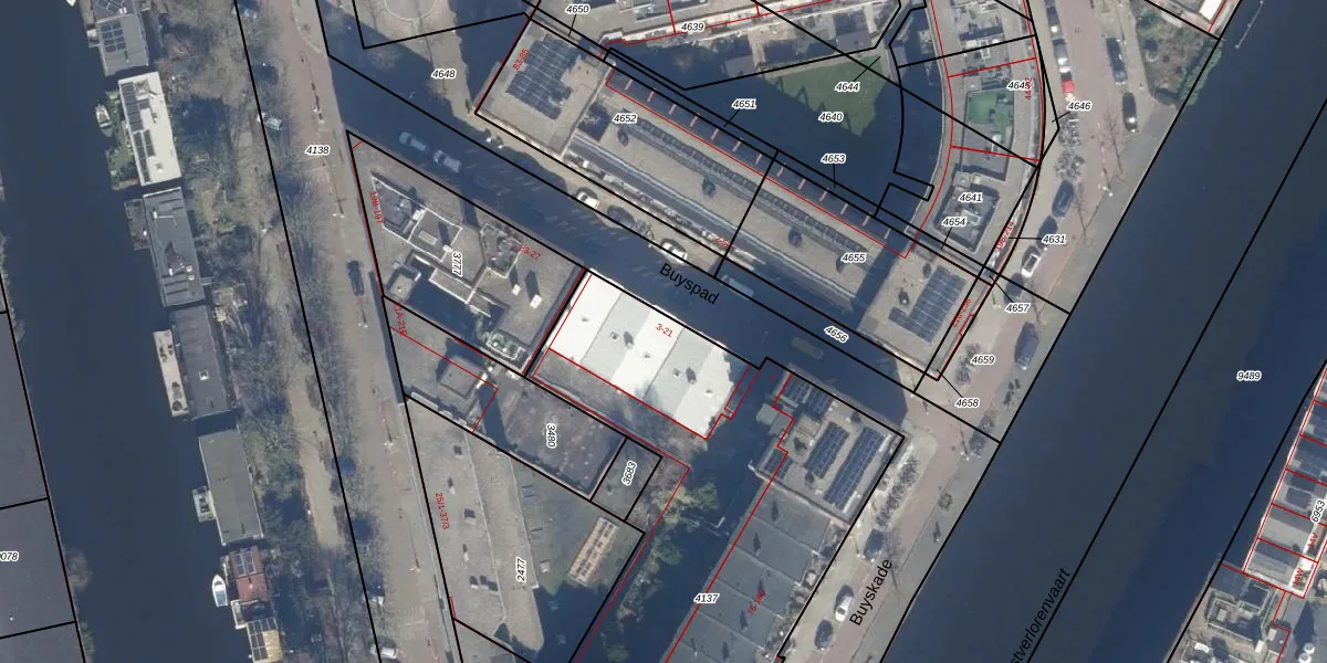 Buyspad 5 is gelegen op kadastraal perceel ASD21Y4137. Deze kadastrale aanduiding is uniek en wordt gebruikt door het Kadaster om eigendomsrechten en andere zakelijke rechten vast te leggen. Het perceel maakt onderdeel uit van de kadastrale gemeente Amsterdam.