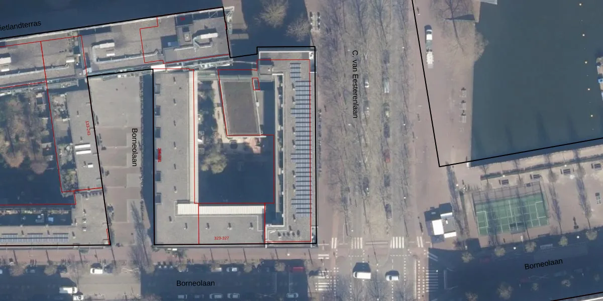 C. van Eesterenlaan 106 is gelegen op kadastraal perceel ASD02A7807. Deze kadastrale aanduiding is uniek en wordt gebruikt door het Kadaster om eigendomsrechten en andere zakelijke rechten vast te leggen. Het perceel maakt onderdeel uit van de kadastrale gemeente Amsterdam.