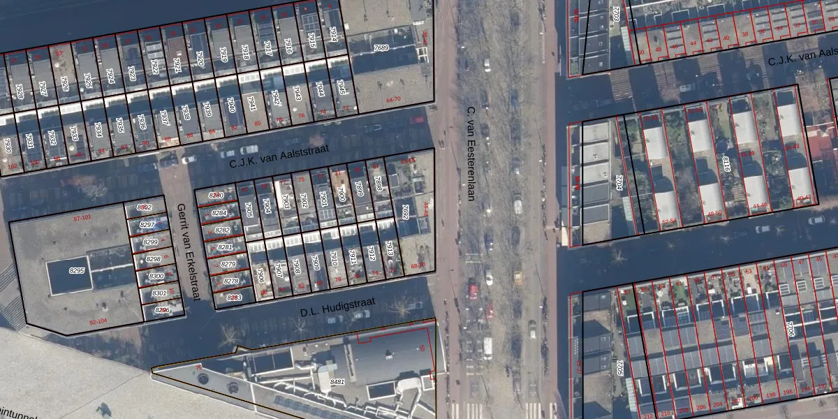 C. van Eesterenlaan 46 is gelegen op kadastraal perceel ASD02A7692. Deze kadastrale aanduiding is uniek en wordt gebruikt door het Kadaster om eigendomsrechten en andere zakelijke rechten vast te leggen. Het perceel maakt onderdeel uit van de kadastrale gemeente Amsterdam.