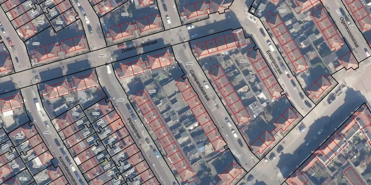 Het perceel waarop Campanulastraat 13 staat heeft een oppervlakte van 2900 m². Dit is een zeer groot perceel. De perceeloppervlakte wordt geregistreerd door het Kadaster. Gedetailleerde informatie over de maten van dit perceel kunt u vinden in het rapport Kadastrale kaart met maatvoering van Campanulastraat 13.