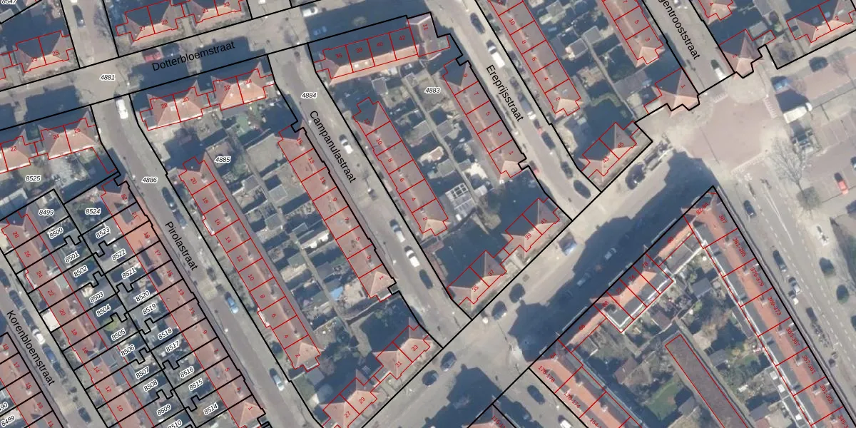 Het perceel waarop Campanulastraat 2 staat heeft een oppervlakte van 2116 m². Dit is een zeer groot perceel. De perceeloppervlakte wordt geregistreerd door het Kadaster. Gedetailleerde informatie over de maten van dit perceel kunt u vinden in het rapport Kadastrale kaart met maatvoering van Campanulastraat 2.